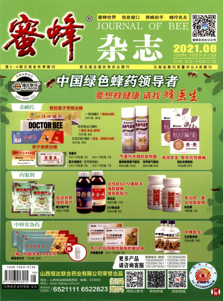 蜂产品开发与利用、饲养管理、中华蜜蜂、其他、蜂业时事、养蜂人生、课程论文园地、病敌害防治、实验研究报告、养蜂与扶贫、综述、蜜蜂医疗、宋心仿蜂业基金专栏、蜂业经济、人物介绍、经营管理、蜜源与授粉、各地蜂业、蜜蜂机具、蜂业与法制等